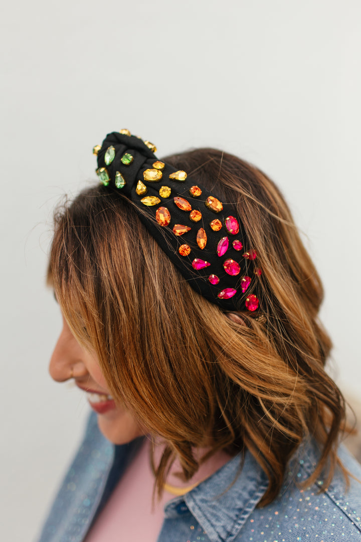 Brianna Cannon Black Headband With Rainbow Crystals