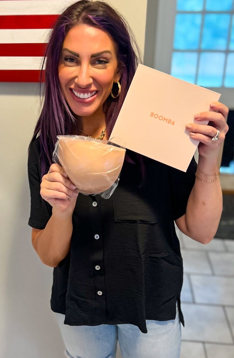 A diferencia de un sujetador pegajoso que se sostiene con un adhesivo, los insertos BOOMBA se sostienen con la ropa, no se quedan en su lugar por sí solos. Es fundamental usarlos con blusas ajustadas, estructuradas y entalladas.