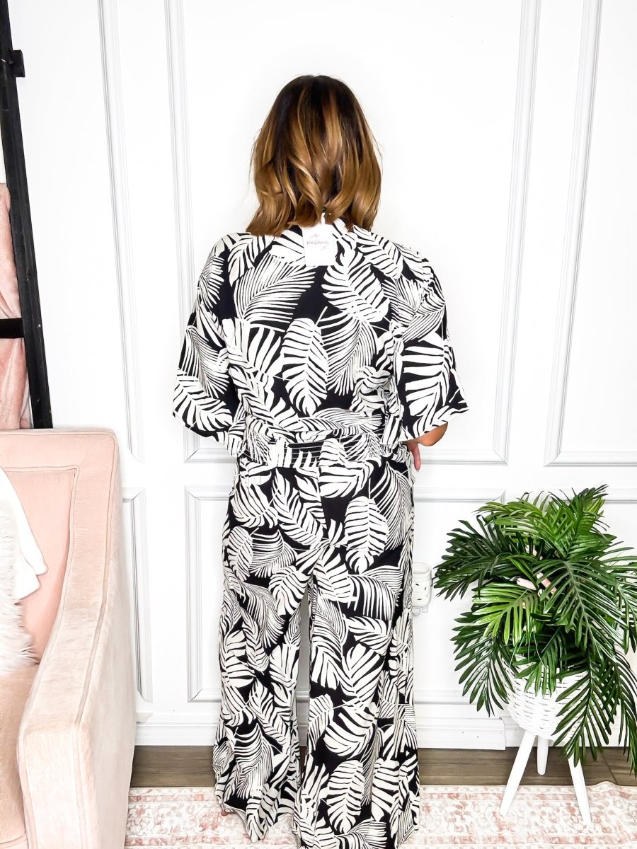 Designed to make a statement without saying a word, these black-and-white palm print pants blend bold beauty with laid-back luxury. Whether you’re brunch-bound or beach-ready, they flow with your every move and elevate your everyday vibe. Let your legs do the talking. Feel bold, feel beautiful, feel free.