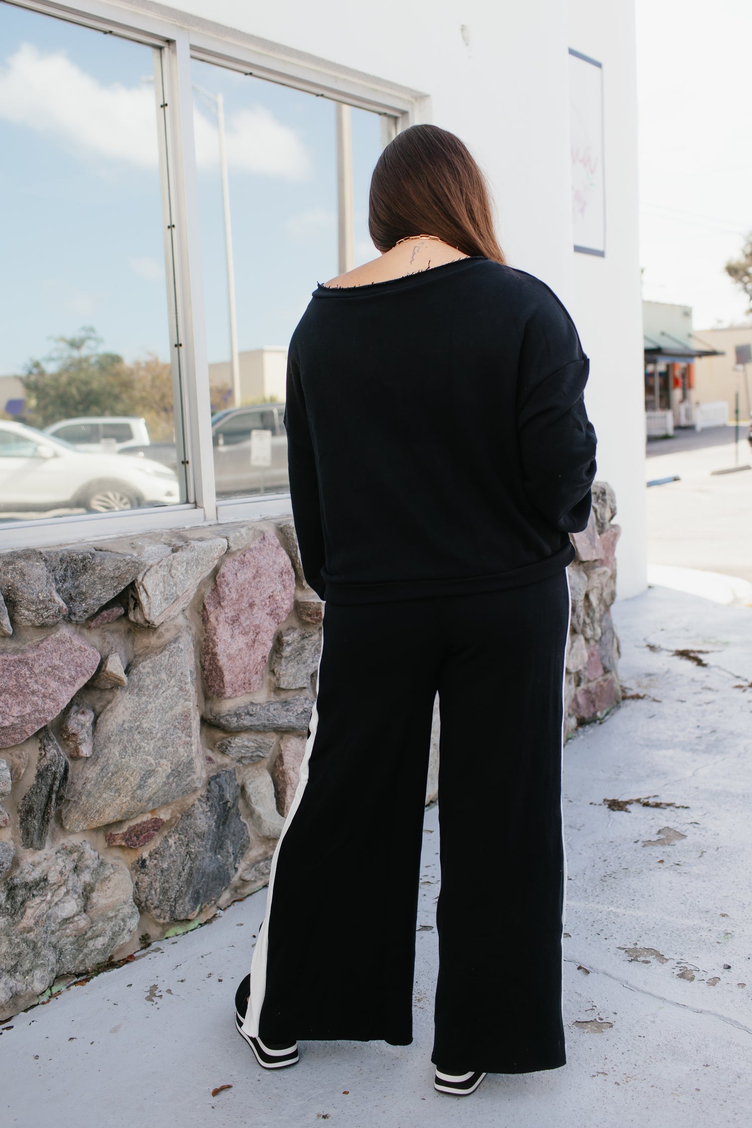 Cozy never looked so chic. This lounge set blends all-day comfort with an effortlessly elevated vibe you’ll want on repeat. Designed with an oversized pullover top and wide-leg pants, it’s perfect for everything from morning coffee runs to laid-back evenings in. The best part? The side stripe detail on the pants adds a touch of sporty-chic style that makes this set anything but basic.