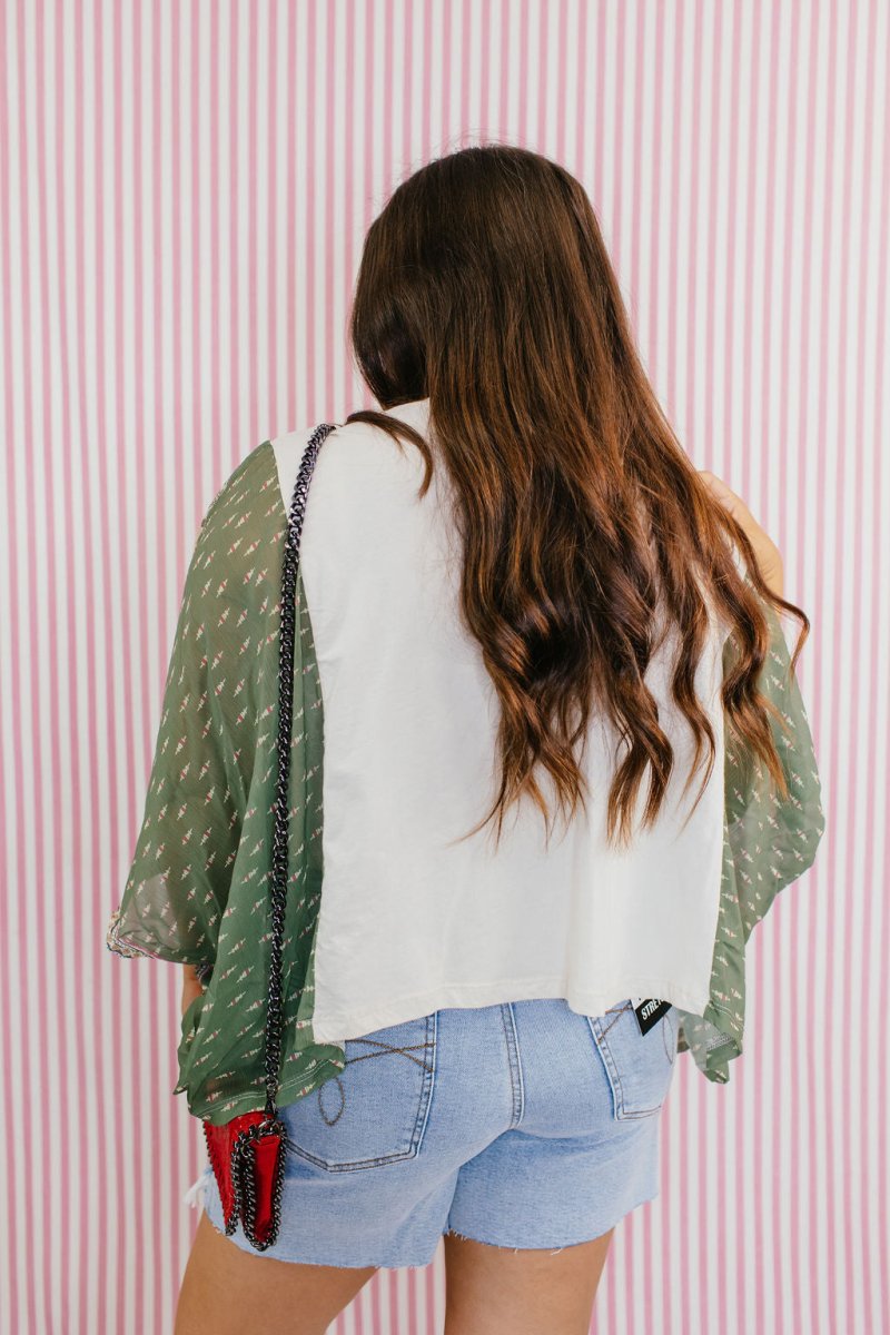 Let your style soar with effortless boho-Americana vibes 🤍 This statement graphic top blends vintage freedom energy with a soft, flowy silhouette that instantly elevates your everyday look. Featuring a bold eagle graphic with romantic floral accents and contrast printed kimono sleeves, this relaxed tee creates that perfectly styled “cool without trying” outfit. Lightweight, comfortable, and full of personality, it’s the ultimate standout piece for casual days, concerts, markets, or weekend adventures.