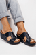 Step into all-day comfort and effortless style with these navy wedge sandals. Designed with soft faux leather and chic cutout details, they offer a modern look with a lightweight feel. The slip-on design makes them perfect for busy days, while the cushioned footbed and stable platform provide all-day support.