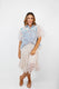 ✔️ Light-wash chambray with lace overlay details