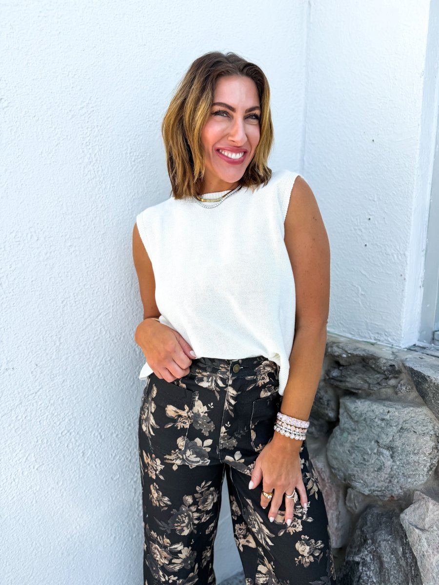 Classic from the front and unforgettable from the back — this sleeveless sweater tank is the perfect mix of clean lines and feminine flair. Featuring a simple, polished front with a soft knit feel, it surprises with bold contrast bow detailing down the back for a look that feels elevated, modern, and effortlessly chic.
