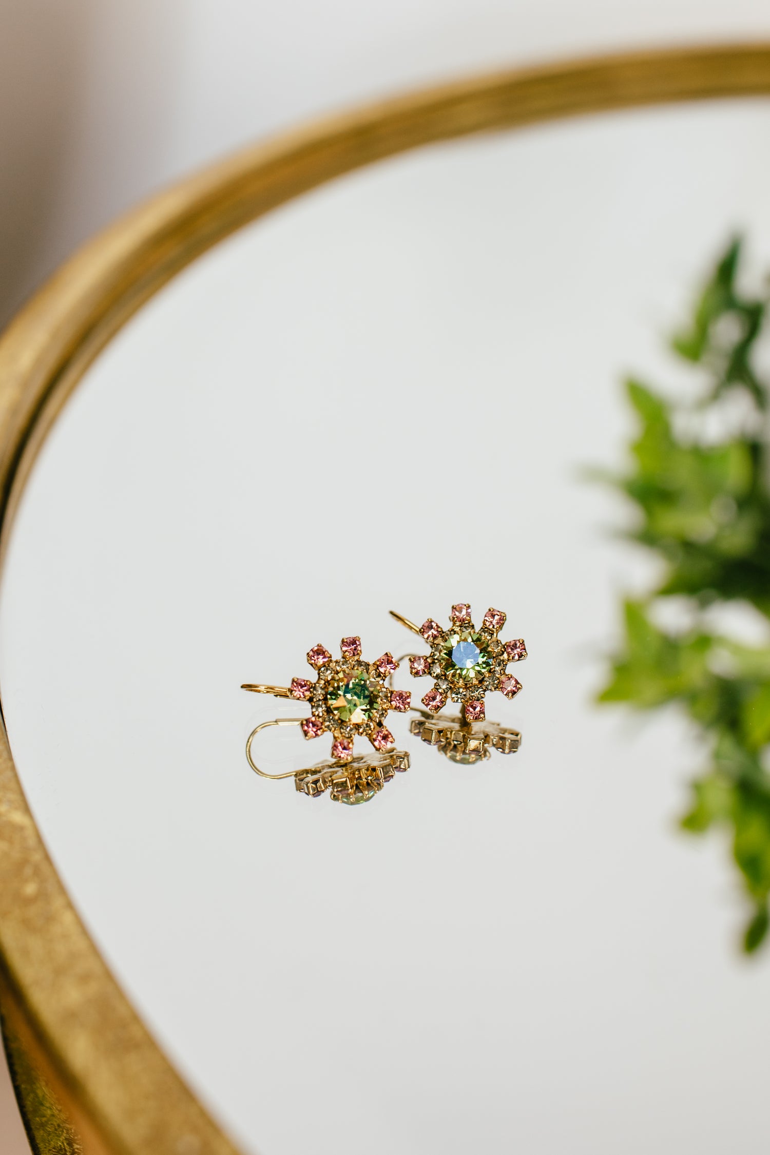 Add a touch of vintage charm to your outfit with our Blaire Earrings. Made with high quality crystals on antique gold plated brass, this 1" Earrings brings a touch of elegance and playfulness to your look. Handcrafted in Canada with love.