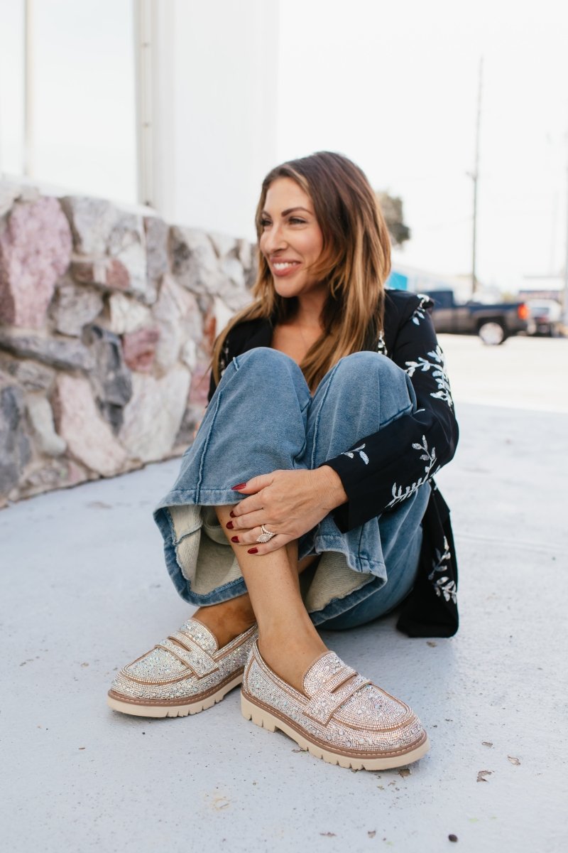 These sparkly rhinestone loafers are proof that comfort and fashion can shine just as bright together.