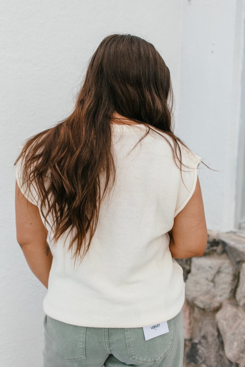 Made from 100% cotton, this sweater vest feels breathable and comfortable while still giving that cozy knit texture we love. Finished with exposed seams, rolled edges, and a ribbed neckline, it has that perfectly lived-in, elevated casual feel.