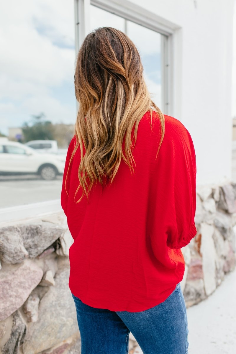 Add a touch of festive flair to your wardrobe with our red blouse featuring plaid trim accents. With its relaxed silhouette, half-sleeves, and bold plaid neckline detail, this top brings the perfect mix of classic and playful.