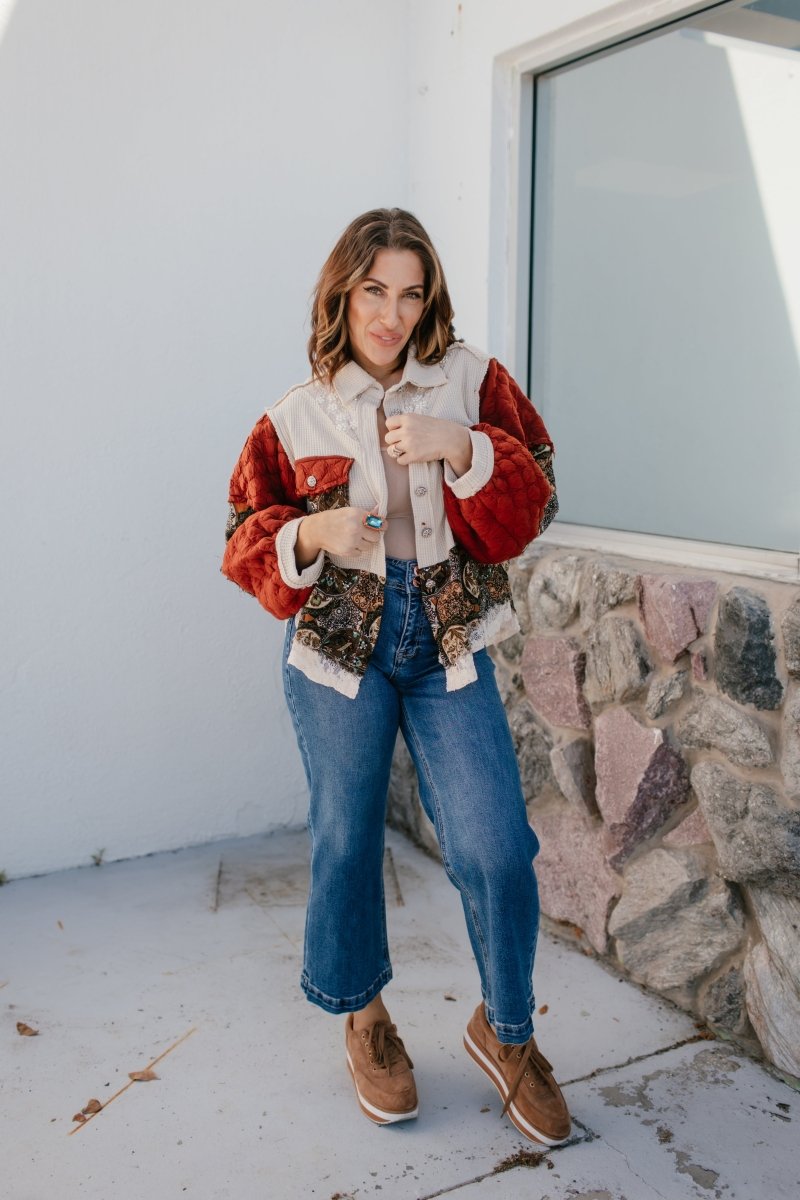 Say hello to the jacket everyone will stop you to ask about. Our Patchwork Boho Luxe Jacket blends cozy textures, gorgeous patterns, and standout details that make any outfit feel elevated. Whether you’re layering it over a simple tank or throwing it on with denim and boots, this beauty instantly turns your look into a full moment.