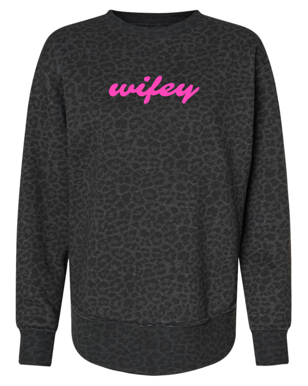 Pink Wifey Leopard Graphic Pullover - FINAL SALE