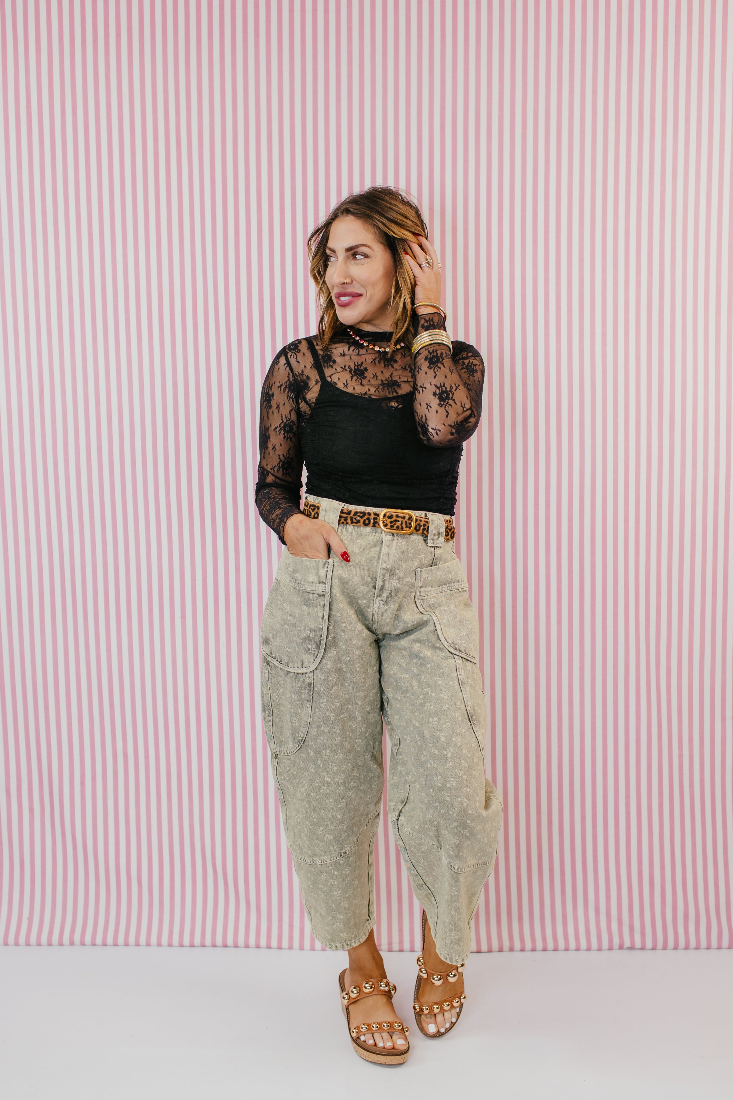 These mineral wash utility barrel pants are the statement denim alternative your everyday wardrobe has been waiting for. Designed with a relaxed cropped barrel silhouette and subtle vintage-inspired wash, they bring that effortlessly styled boutique vibe while keeping comfort front and center.