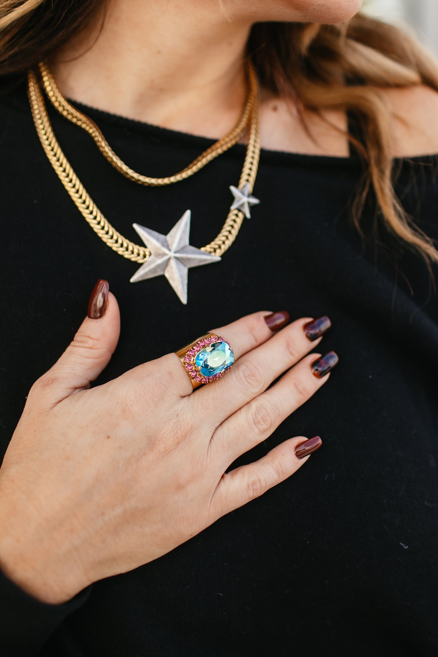 Add some vintage charm to your look with the Chloe Ring. The antique gold plating and high quality crystals make for a stunning piece. Plus, the adjustable feature allows for a perfect fit. Handcrafted in Canada, this ring is a must-have for any fashionista.