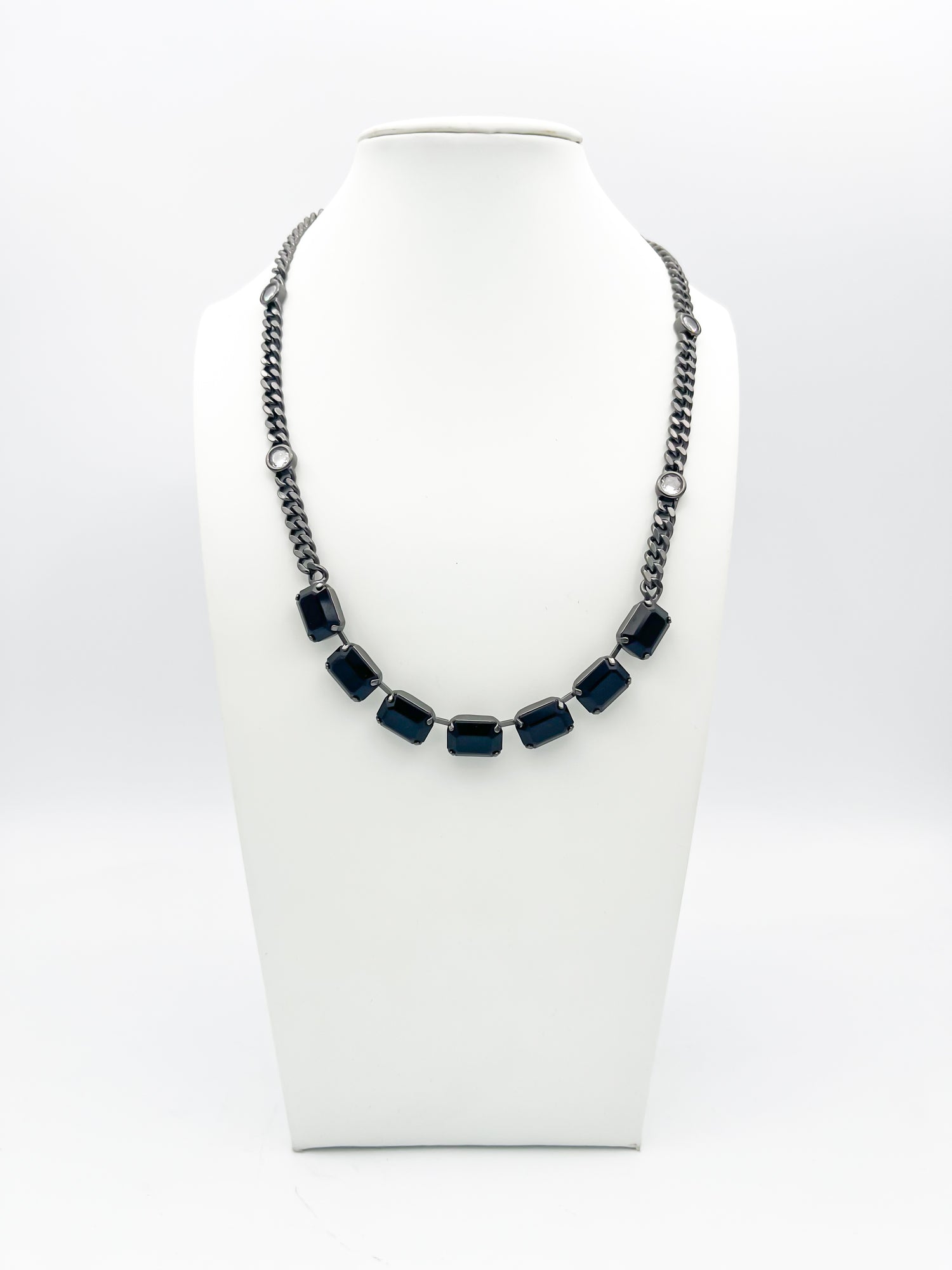 Stand out in this sparkling statement necklace by Leilani! Crafted with high-quality crystals and a gunmetal plated brass base metal, this unique necklace puts the perfect finishing touch on any outfit. Plus, it's made in Canada so you know it's quality! At 16.5" with a 3" extension, this necklace is perfect for making a bold impression!