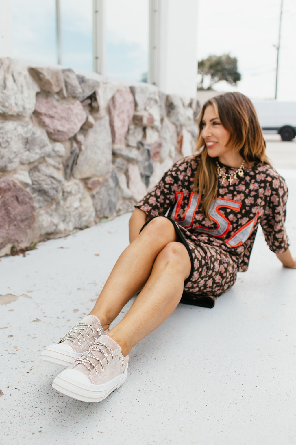 Keep it casual yet chic — the ultimate blend of comfort and cool-girl style. Designed in a neutral nude tone with a soft, velvet finish, these sneakers are the versatile pair your closet has been waiting for. The chunky platform sole gives you a boost in height while staying lightweight and walk-all-day comfortable.